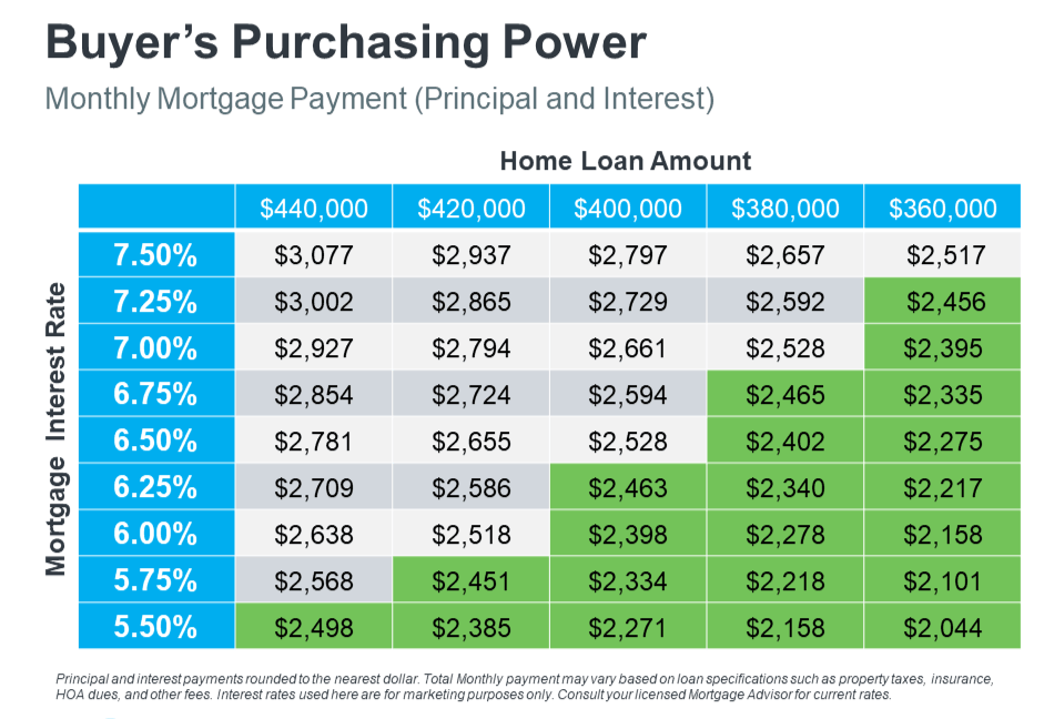 When rates go down, your monthly payment becomes more affordable — meaning you can qualify for a higher-priced home or simply enjoy a lower payment for the same home.